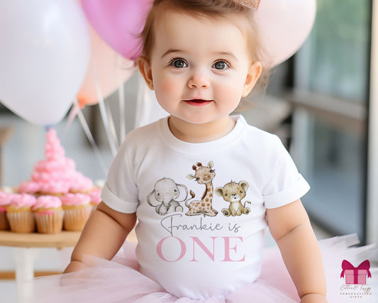 Personalised Kids Safari First Birthday T-Shirt, 1st Birthday Outfit, Safari Tee shirt, Pink/Blue Top, Jungle T Shirt For Boys & Girls