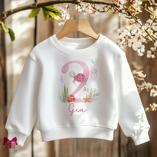Personalised First Birthday Under The Sea Sweatshirt, 1st/2nd/3rd Birthday Jumper