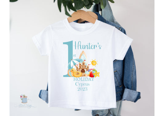 Children's First Holiday T-Shirt With Destination, Kids 1st Holiday T-Shirt, Cotton Printed T-Shirt