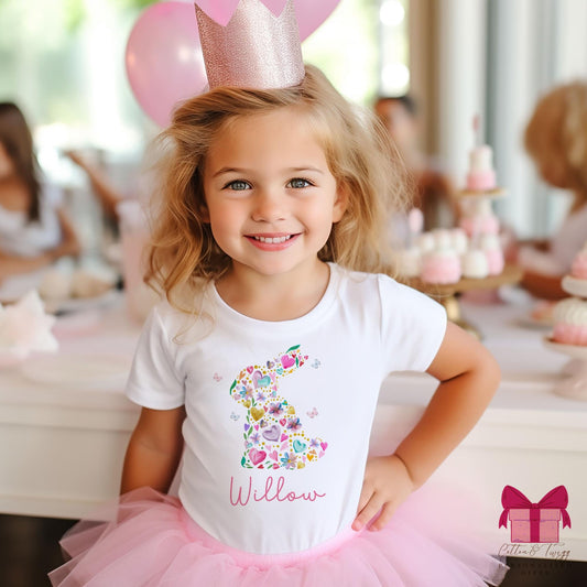 Girls Easter T-Shirt, Personalised Easter T-shirt, Girls Floral Easter bunny T-Shirt, Easter Gift Ideas For Girls, Pretty Cotton Bunny Top