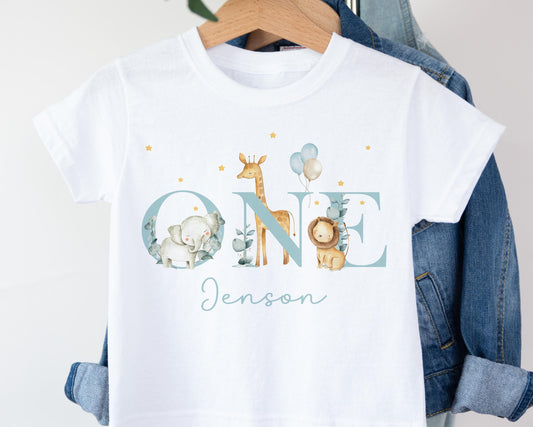 Personalised Kids Safari Birthday T-Shirt, 1st Birthday Jungle T-Shirt, Safari 1 Vest, First Birthday T-Shirt for Baby Boy, Birthday Gift