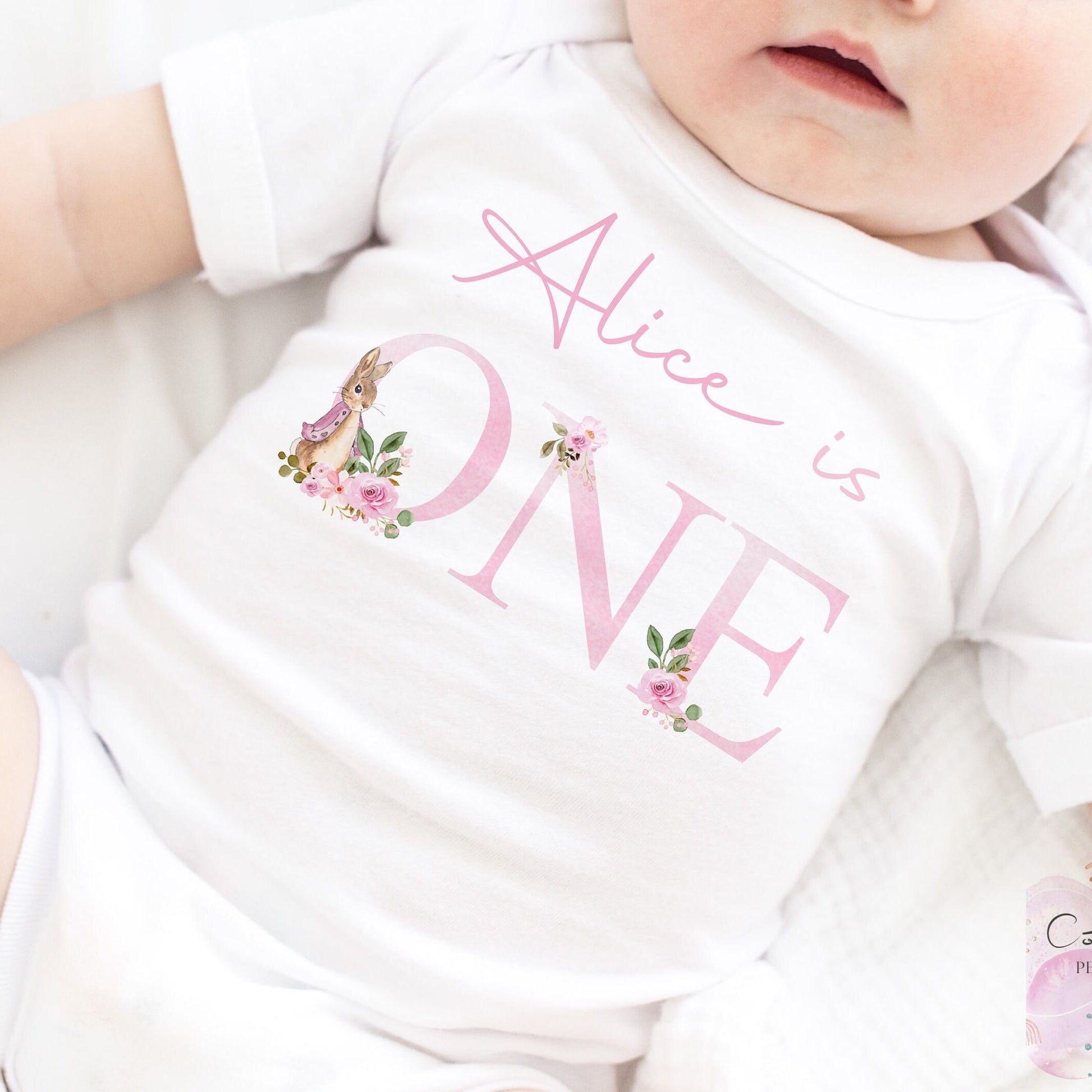 Personalised I am One Sleepsuit, Personalised Pink Rabbit Birthday Vest, 1st Birthday Babygrow, Unisex Birthday Vest