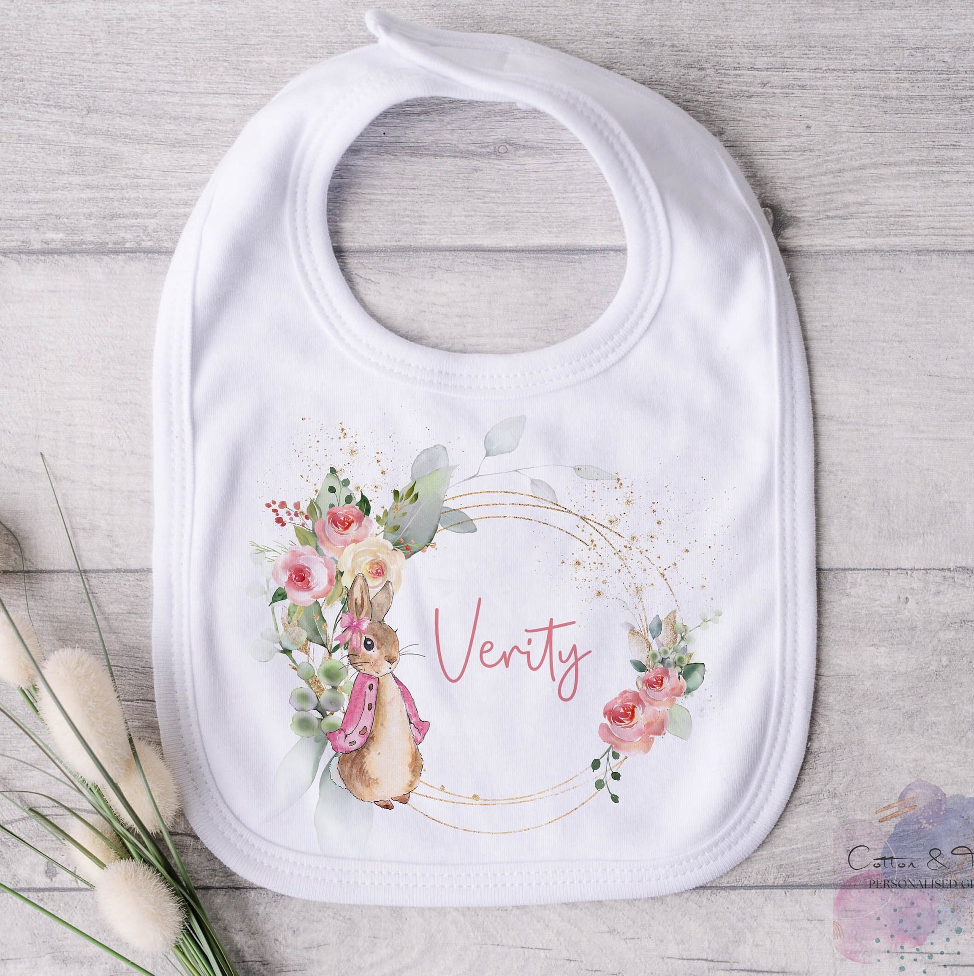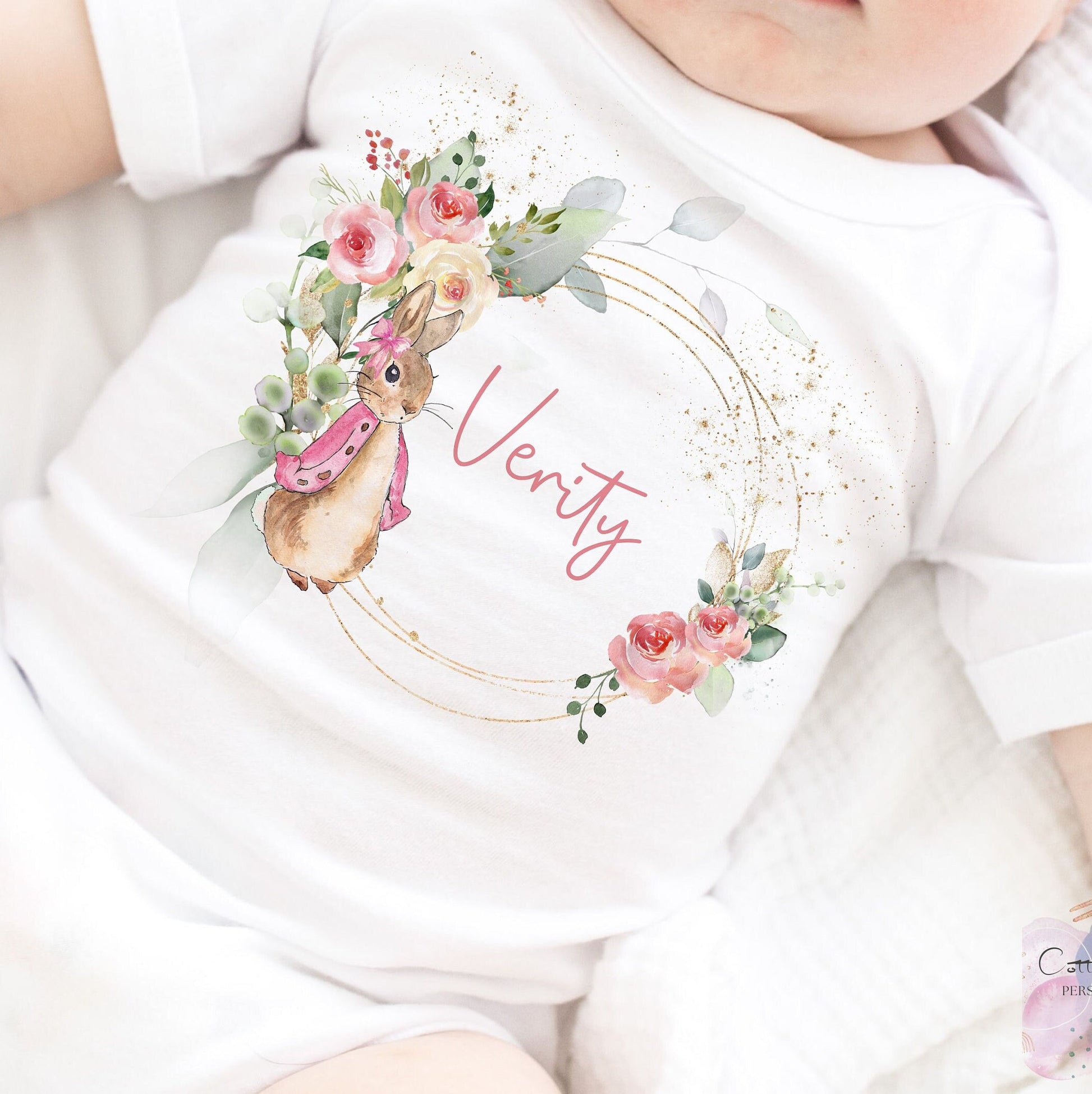 Personalised New Baby Sleepsuit, Vest/Bodysuit & Bib Little Pink Bunny Babygrow, Baby Shower Gift, New Baby Present