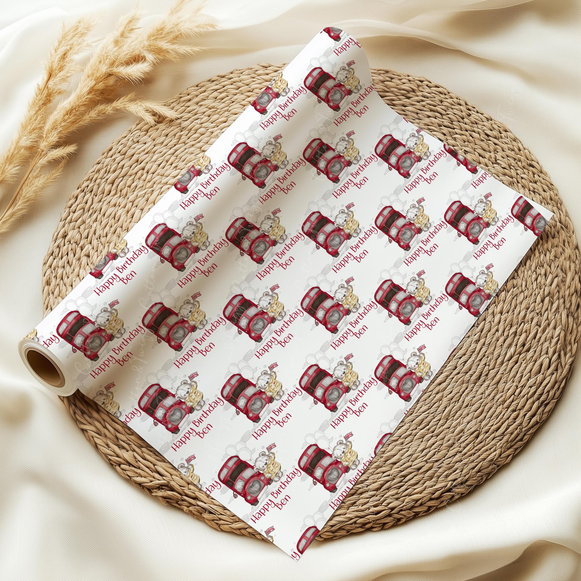 Personalised Red Bus Wrapping Paper For Little Boy Or Girl, Bus Gfit Wrap Card For Son, Daughter, Granddaughter, Niece, Relation
