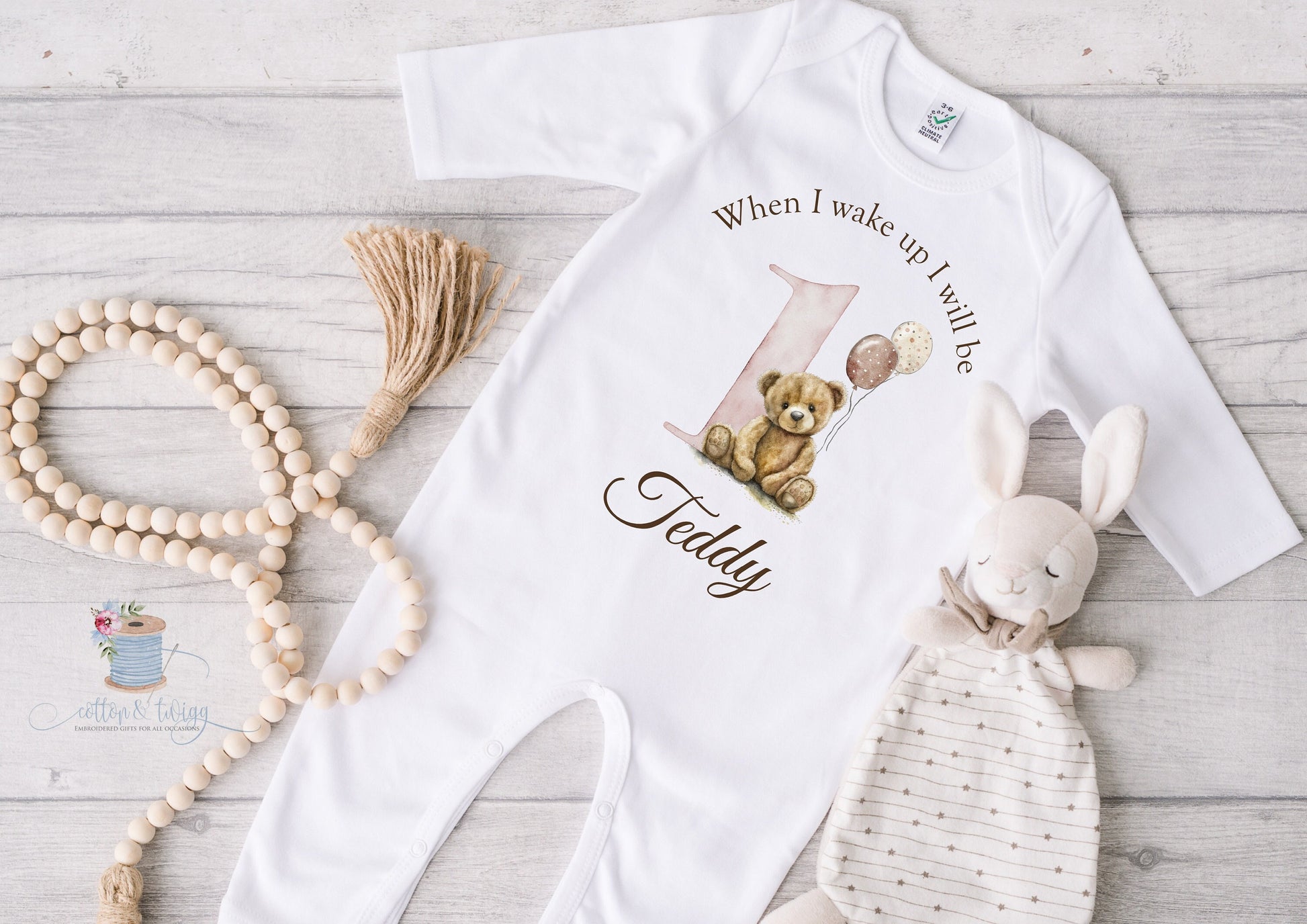 Personalised When I Wake Up I Will Be One Sleepsuit, Personalised Birthday Romper, 1st Birthday Babygrow, Unisex Birthday Outfit